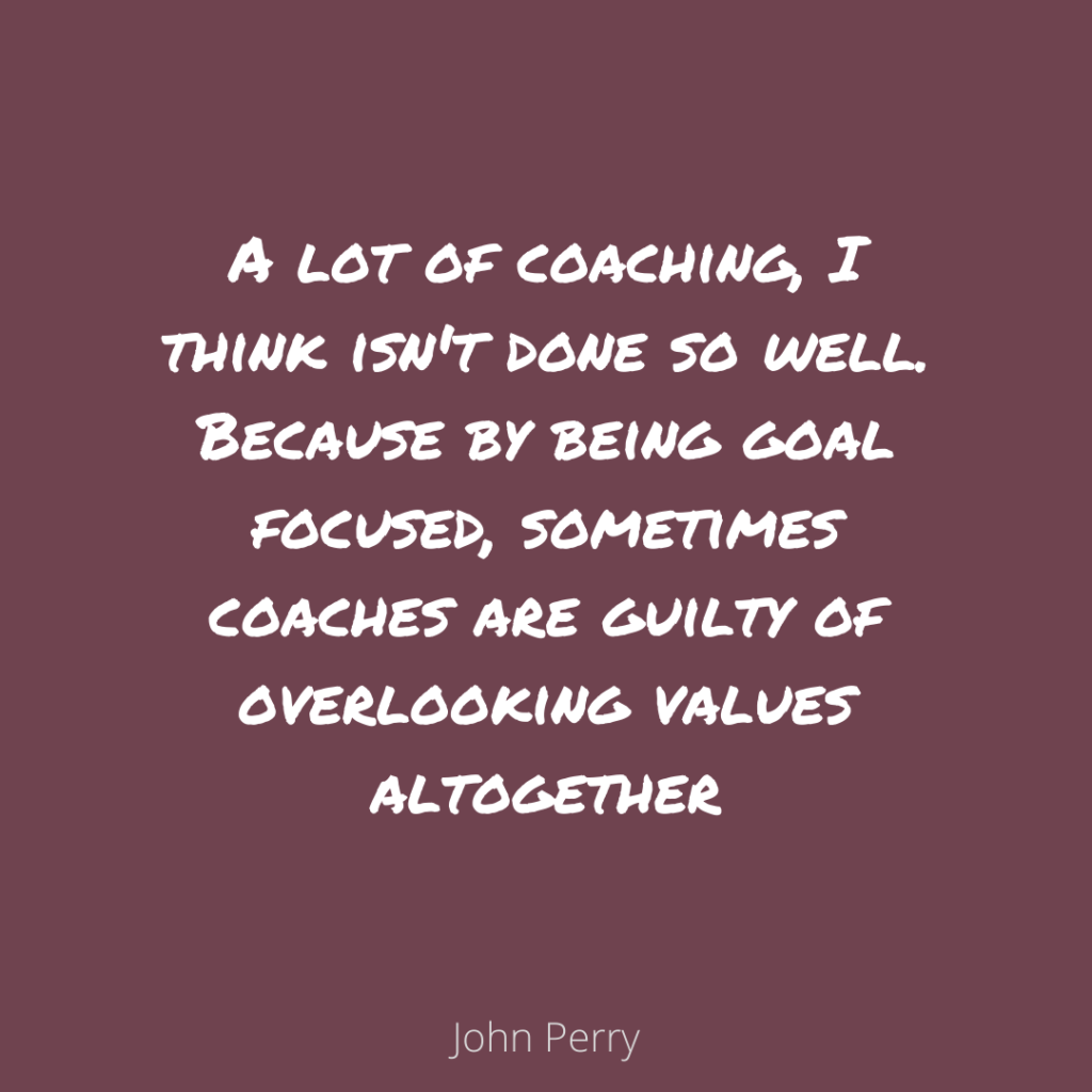 - The work on Values and how coaches forget to sometimes spend time on defining them properly because they are too goal focused (32:07)